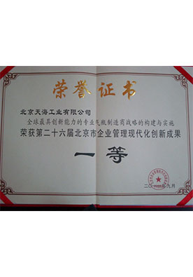 天海工業(yè)一直秉承“誠(chéng)信、敬業(yè)、學(xué)習(xí)、創(chuàng)新,志在一流”的企業(yè)精神,以安全可靠的產(chǎn)品和優(yōu)質(zhì)的服務(wù),樹立了良好的企業(yè)形象,先后榮獲中國(guó)百?gòu)?qiáng)企業(yè)、北京市十佳外商投資企業(yè)、北京市高新技術(shù)企業(yè),中國(guó)金屬壓力容器制造行業(yè)排頭兵企業(yè)和全國(guó)“五一”勞動(dòng)獎(jiǎng)狀、“北京市專精特新小巨人企業(yè)”、“國(guó)家級(jí)專精特新小巨人企業(yè)”等榮譽(yù)稱號(hào)。