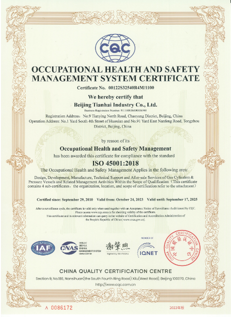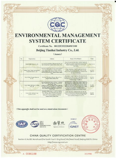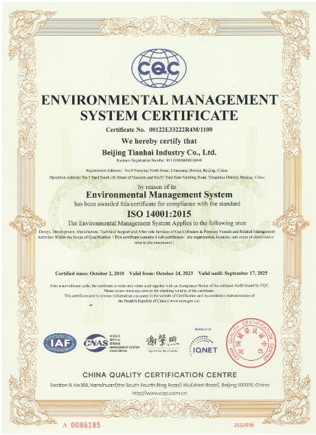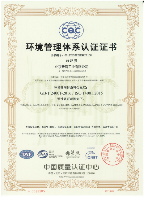 2010年-2015年,天海工業(yè)陸續(xù)建立了ISO14001和OHSAS18001環(huán)境和職業(yè)健康安全管理體系,整合了天海工業(yè)“三體系”,通過中國質(zhì)量認證中心的認證并取得證書。