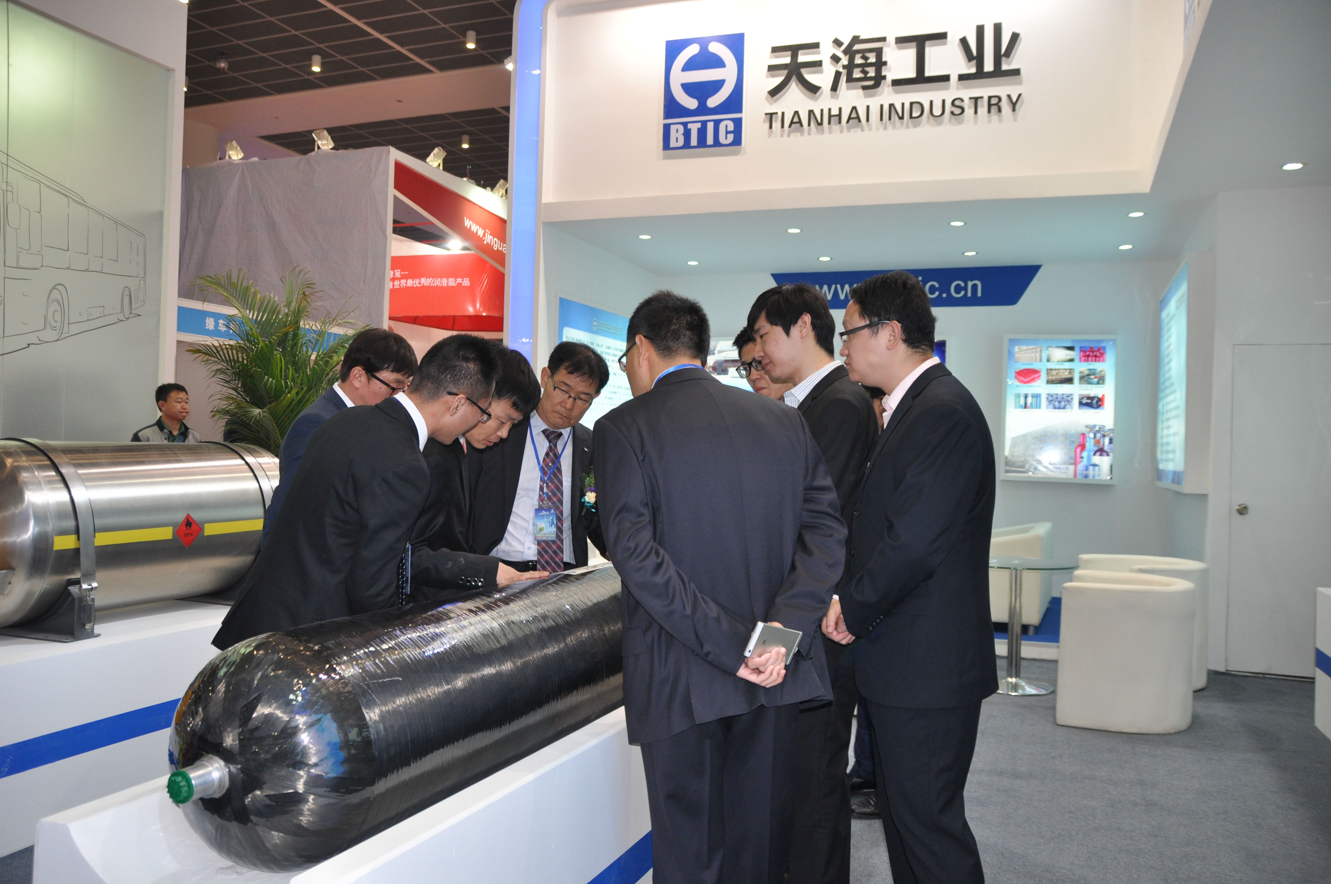 天海工業(yè)秉承高效、環(huán)保、節(jié)能的理念,致力于推動(dòng)清潔能源汽車燃料系統(tǒng)的發(fā)展,提供天然氣儲(chǔ)運(yùn)領(lǐng)域全套解決方案。此次展會(huì),不僅展出了公司全新研制的車用鋁內(nèi)膽碳纖維全纏繞復(fù)合氣瓶(CNG-3型瓶)、還有具有國內(nèi)先進(jìn)技術(shù)的車用SI型LNG氣瓶、更有可為客戶提供全面的LNG氣瓶定檢站/維修服務(wù)站解決方案,吸引了天津公交、濟(jì)南公交、中通客車、青年客車等眾多客戶及廠商前來溝通洽談。天海工業(yè)豐富的產(chǎn)品種類和優(yōu)質(zhì)的服務(wù)得到客戶的廣泛認(rèn)可,體現(xiàn)了天海工業(yè)在天然氣產(chǎn)業(yè)鏈中豐富的裝備制造能力以及強(qiáng)大的品牌影響力。