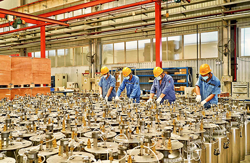 在天海工業(yè)明暉車間里,一派繁忙景象,工人師傅們正在對液氧呼吸器的零部件進行組裝。據(jù)介紹,此呼吸器采用高真空多層絕熱設(shè)計,與常規(guī)工業(yè)液氧氣瓶相比,具有更好的絕熱性能,液氧靜態(tài)存儲時間可達到30天以上。